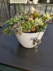 トイプー鉢に寄せ植え ■作品内容 トイプードルの鉢に多肉の寄せ植え🐶■工夫ポイント 小さい鉢なので小さめの苗をこんもりぎゅうぎゅうに寄せました🤗💕✨※以下多肉ハック部門のみ入力■材料■工程