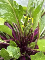 ■育てた野菜クキッコリー赤 ■エピソード(チャレンジしたきっかけなど)一昨年の秋に育てました冬の間の葉野菜にカットすればするほど生えてくる😆なので、我が家では冬には欠かせないお野菜に🎶昨年の秋に苗を見つけて育てることにようやく茎が伸びてきて茎菜がでてます花が蕾の頃カットします☺️茎菜を食べ