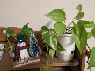 伸びてる〜ポトス ■作品内容 ポトスとポトスライム■工夫ポイント 一つの鉢から元気に伸びてます※以下多肉ハック部門のみ入力 ■工程