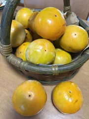 柿 収穫 昨日の柿の収穫日が暮れてからだったので少し青い😅😅でもすぐに柔らかくなってしまうからこれくらいが日持ちするのかしら?