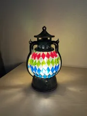 ミニランタン作り ミニサイズのランタンにモザイクガラスを貼っていきます。表と裏と違う模様にしました😊