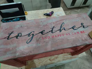 B&Bのws終わりました。久びさに時間めーいっぱい使ってのws初めに天板のダメージ加工。肉たたきハンマーでガンガン叩きます⚒️ひたすら叩きます⚒️これ家でやったら周りからヤバい人に見られるかも😱って位に😁次に天板をくっつけてからステインで塗装🎨カスレ加工する場合は下地と上に塗るペンキを考えて