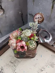 多肉寄せ植え 『トリプルコラボ』 ちょっと久しぶりの檸檬🍋です😅💦昨日は、イベントで多肉寄せ植えWSに行って来ました😊💗✌️『トリプルコラボ』というのは、まずカフェトレイ作り☕次にリメ缶をヴィンテージに仕上げ🎨最後に多肉寄せ植え🍀多肉はセダム以外は韓国苗😍モリモリ入れてよし👍好きな多肉選んでバランス見てキュッ!キュッ!あっ!😆こっち