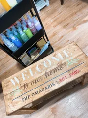 【Board & Brush】コラボのシェルフベンチ DIY初めて3作目 Board & Brushコラボのシェルフベンチ作りました〜新宮店で初だったらしくめっちゃかわいいから皆さんにもぜひ可愛さを知って作って欲しいです。昨日作ったんですが、汗だく💦でしたよ(笑)お気に入りのポイントは、きれいな状態を汚く?ビンテージ風に汚していくところです。釘