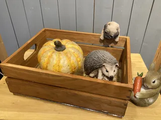 ホールソーでベジタブルボックス 楽しみにしていた、ベジタブルボックスです🙌脚を取り付けるときに、ビスが見えてしまったり、又釘?に苦戦しましたが、勉強になりました!これで、庭の野菜を収穫したら、気分があがるなー💕育ててないけど😁妄想で幸せ🍅🥒🍆🥔🥕😆