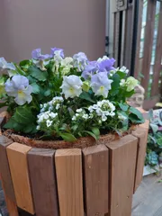 先月作ったゆぴのこさんのプランターにやっとお花を植えました。ヤシマットをひいてお安くなっていたビオラチャイニーズブルー 3株白のアリッサム3株 ビオラのフリルがとても可愛いです😆明日からまたとっても寒いのでちゃんと根付いてくれるか心配です😅