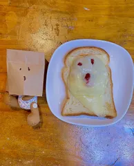 ハロウィン ハロウィンなのでトロけるチーズに穴をあけて焼いてみました👻 具材は、残ったソーセージとケチャップのみです💧