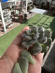 アタマでっかちのシュークリームちゃん ■作品内容アタマでっかちになっていたシュークリームをチョンパしました。■工夫ポイントバランスを整えるために葉を取って葉挿し用に❣️茎には葉を数枚残しておくと新しい子株が出来やすいです😊 ※以下多肉ハック部門のみ入力■材料アタマでっかちの苗■工程葉と葉の間のちょうど良いところをチョンパ❣️