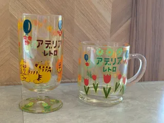 昨日はアデリアレトロのオリジナルグラス作りに参加してきました😊💕今回はこの2種類😁🎶同じグラスを以前作っているので、以前の作品を持ち込み何となくペアになるように作りました❤️↑脚付きグラスにズーメイトは外せない🤣🤣↑前回は中心野ばなだったので今回はコレック🌷で😁🎶↑後ろに野ばなもあるよ🤍マグカップは