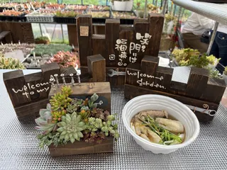 多肉寄せ植え 遠方のイベントに行って多肉寄せ植えしました😃🎶いつもモリモリ豪華寄せ植え😊 お腹いっぱい秋田郷土料理「きりたんぽ鍋」いただいて来ました💕