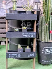 NEW ラダープランター✨ やっとステンシルしました✨汚しもしようか迷い中😅 暖かくなったらハウスのサボテン🌵とかアガベをたくさん入れて飾りたいと思います✨