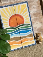 太陽☀️が、卵の黄身みたいになってしまいましたが^ ^笑笑見て元気になるようなサインボードにしました😃1人ボッチでしたが、スタッフさんとお喋りしながらの楽しい時間でしたありがとうございました🤲