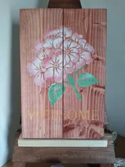 タイニーサインボード第二弾です!!最初、お花部分を青よりの紫(あお紫)にしたかったのですが、思った色に混ざらなくて…。即あきらめました(笑)こだわり過ぎると私の場合失敗するので😆(笑)淡い感じに出来上がりました。はっきりとした色合いより私らしいかなぁ。楽しかったぁ〜✨️