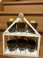 WSタネから育てるおやさいハウス おやさいハウスを作ってきました🏠まずはハウスの組み立て🛠️長さの違う木材を間違えないように、ゆっくり丁寧に進めてくださったので、順調に完成✨塗装終わって、終了気分でいたら、そこからがポットの出番です🪴サカタのタネ 水菜 レタス ラディッシュこちらも1種類ずつ、蒔き方を教えてもらいました🌱最後に育て