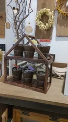タネから育てるおやさいハウス 久しぶりにWSに参加してきました。タネから育てるおやさいハウスですが 棚は台所で棚として使う予定です。途中まで順調でしたが 色塗りで問題が発生❗今回超撥水のブラウンを使ったのですが すのこ状の棚を塗ると 隙間になるベニアの横の色が乗らない面が塗り忘れに見えてしまうのです😱濃い色なので 薄い所が目立っ