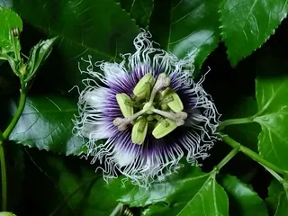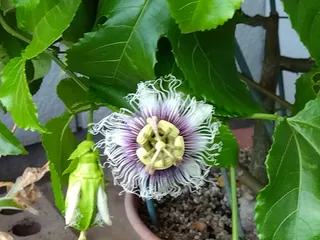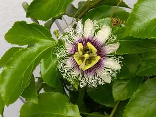 パッションフルーツの花 20個目、21個目、22個目 今日はお出掛けで19時過ぎに帰宅して確認したら3個咲いていました😅まだ開いていたので人工受粉しましたが結実できるかどうか🙏😉💕🎵