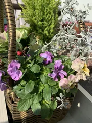 GWSでクリスマスに作った寄せ植えのふりふりビオラ(おしゃれビオラJOY)がたくさん咲いてます❣️かわいい💕