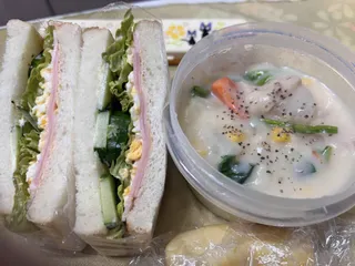 大根入りクリームシチューハムと卵サンドゆで卵半分しか使えなくて🥲ザンネン今はレンジがあるのでタッパーでありがたいです
