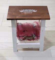 WSで作ったミシン椅子を少しアレンジしました🪑天板にステンシルをして、ブランケットやタオルなどちょっとした小物を入れられるバスケットを取り付けました🧺アレンジレシピはこちらです☺️
