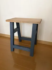 ずっと作りたかったミシン椅子を作りました。座面は木部保護塗料のウォルナット、足はエクステリアカラーのアイアンブルーを使いました。少しだけ、がたつきます。私の重さで座ると、がたつきが気にならない程度です!ダイニングチェアと雰囲気を合わせました。珍しく主人が、「良いじゃん!」と褒めてくれました(*≧∀≦