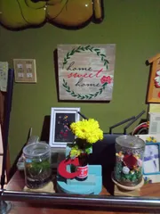 ミニサインボード(愛する我が家) ミニサインボード、玄関に飾っています…ホーム.スイート.ホーム!愛する我が家、家族を送り出し迎えるので毎日通るこの場所が定位置に決まりました!