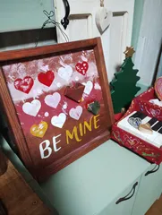 初期の頃の作品です✨ハートも手鋸で切っていました😊ミニサインボードの裏側アートとフレーム付サインボードをくっつけちゃいました✨思い出がいっぱいつまった作品です✨
