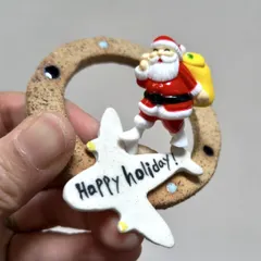 NEW 陶のオブジェ・ミニリース【Happy holiday!】 ■作品内容陶土で作ったオブジェ・ミニリース ■工夫ポイント①キュートなミニサイズ!②雰囲気の異なる2種の土のコラボ(石の粒が入ったザラザラとした手触りの梨色の本体&つるつるスベスベ、真っ白で光沢のある飛行機)③壁に飾っても良し!ツリーに吊しても良し!カトラリーレストにしても良し!④クリスマ
