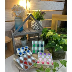 NEW ドロップコースター♪ WS70、71個目♪ 昨日は、午前中、ドロップコースターのワークショップを、連続して2枠予約して、4枚作って来ました😊♪ 難しい😓💦💦 Squareの皆さんの作品を参考に事前に見ては行ったものの、土台の色、ステンシルする色選び、その場で決めて行きました 土台は