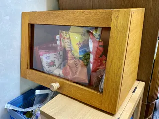 久しぶりに高槻店のワークショップへ行って来ました。以前に申し込みをした事のあるカフェ風ショーケース、その時は台風の影響でワークショップ自体中止になってしまいましたが、今月開催予定にあったので申し込みし参加して来ました。 メイプルで塗装しました。とりあえずお菓子入れてみました。