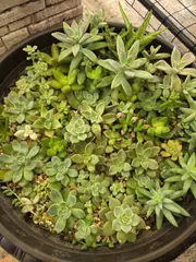 ■作品内容いろんな多肉を寄せ植えた時の水捌けをよくする。■工夫ポイントたくさん苗をいれると水もちがよく、根腐れすることもあるので水捌けのよい土を使います。その上でプラ鉢に自作のスリットをいれたり、カインズで買った余ってる花壇ブロックに乗せたりして乾燥させます。■材料花壇ブロック、スリットをいれる工具