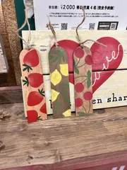 ブックマーク、しっかり硬い木の板で思ったよりも大きい感じ。 いちごっぽくするために帰宅してから手を加えてみました。店舗で筆もお借り出来ますが、私がやると点々にならないのでペンで描きました。 あとはひもをカワイイものを探して付け替えてみようと思います。