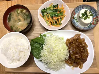 NEW 今日の夕飯シリーズ 今日はダンナのリクエストのポークチャップと小松菜と人参のナムル、冷奴、お味噌汁です🥰お子ちゃまが好きそうな味ですね笑😆