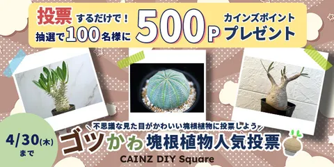 不思議な見た目がかわいい!ゴツかわ塊根植物人気投票 ユニークで思わず見入ってしまう ぷっくり ゴツゴツ したフォルムが魅力の塊根植物🌱置くだけで空間のアクセントになり、見ているだけでも癒やされる魅力的な植物です。8種類の塊根植物の中から、「お部屋に置きたい!」「育ててみたい!」と思う塊根植物にご投票ください!なんと投票するだけで!抽選で合計100