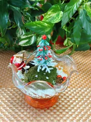■作品内容苔テラリウムでクリスマス🎄■工夫ポイントストーン(白)を使い雪❄️☃️をイメージし木のみやサンタ🎅🏻のピックを添えて小さな庭のクリスマス🎄を作りました🤗