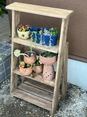 はじめてのおうちDYI 鉢を飾る台を作りめした🫢携帯片手に材料収集😃ダボって( ? _ ? )どう使うの〜全部ビスでやってしまえ〜なんとか完成しました。
