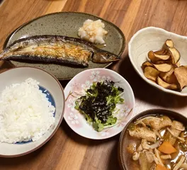 昨日の夕飯🍽️半額の秋刀魚と豚汁🐷