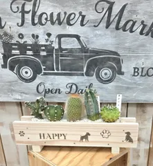横長プランターとサボテンの寄せ植え🌵🐕️🐶💕 ■作品内容 WSにて"横長プランターとサボテンの寄せ植え"作りました🌵🌵。 ■作品のこだわりポイント プランターの色は白を塗り、ペーパーで拭いて、ナチュラルな感じにしました🤍。 ステンシルは、可愛いわんちゃんのステンシル🐕️🐾🐕️で 姉の家の子のシ