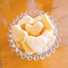 ■材料りんご 1個(250gくらい)水 100ccはちみつ 大1(無ければ砂糖でも。可好みの甘さで)ゼラチン 10g■作り方①、りんごをする。②、①と水100ccで煮る③、はちみつ・ゼラチンを入れ、まんべんなくかき回し溶かす。④、粗熱をとり、③をふわっとなるまで泡立てる⑤、型にいれて冷蔵庫で固める⑥