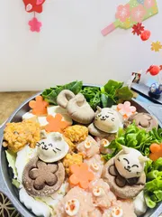 招き猫鍋 ■作品内容大根おろしで招き猫を作ってお鍋に入れました ■作品のこだわりポイント大根おろしの招き猫白はんぺんでおみくじきのこで絵馬も作りました^ - ^