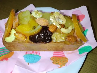 木の実のパウンドケーキ ■作品内容木の実とドライフルーツたっぷりのパウンドケーキ ■こだわりポイントパウンドケーキの中にもナッツやドライフルーツが入ってます杏ジャムを塗ってドライフルーツやナッツを固定してます