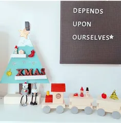 ■作品内容 クリスマスツリーと汽車のディスプレイ■工夫ポイント家にある端材と100均で作りました♪ツリーには飾り棚の上は気分次第で変えれます。汽車のフェイクのタイヤは椅子の脚裏につける傷防止のコルク。下に小さいキャスターがついてて動きます♪連結部分はそのミニキャスターをはみ出て付けて、ゼムクリップを