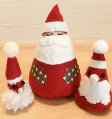 ■作品内容色々な表情のサンタクロースを作ってみました■工夫ポイント余った切れ端で作りました。3人のサンタクロースのヒゲを違うものにして、コロンと丸い形にし、フェルトの柔らかいイメージに合わせてみました!