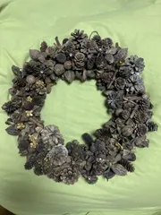 森の木の実のリース ■作品内容材料集めに力を入れました。かなり主人に協力してもらいました。大きくて重いです。■工夫ポイント派手さはありませんが。さりげなくラメを入れています。※以下カインズクリスマス部門のみ入力■使用した商品