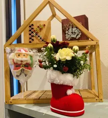 サンタブーツにアレンジ サンタブーツにオアシス入れて自由に手の向くままアレンジしました。 ■作品内容■工夫ポイント※以下カインズクリスマス部門のみ入力■使用した商品サンタブーツは,100勻お花は,ガーベラやカーネーション、かすみ草などです。