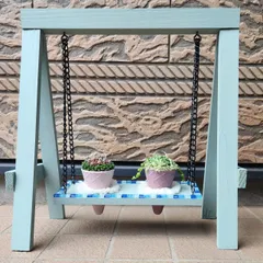 ブランコ型植物スタンドにアイス多肉✨ ■作品内容 WSで作ったブランコ型植物スタンドをアレンジしてアイス多肉を乗せてゆ~らゆら ■こだわりポイント ブランコ型植物スタンドの穴が大きかったので隙間テープで穴の大きさを調整しフリルリボンをつけました。アイス多肉のコーンは砂場用のものをザラザラベースでリメイクして