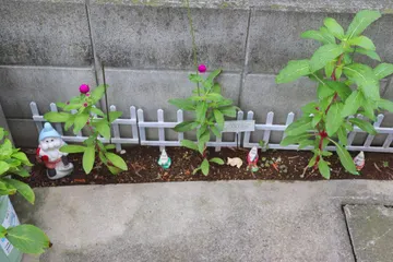 種から育てた千日紅 ■作品内容長細い地植えスペースを活用すべく種から育てた千日紅を植えました ■こだわりポイント少しでも可愛く見えるように使わなくなった小人の飾りやガーデンピックを置きました花が雨風でよく倒れるので、支柱でささえています少しずつ花?もついてきました🌸