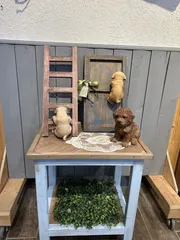 本日、Store original インテリアミニラダー&ミニドアーを作って来ました。写真を見たら、なんだこの汚しは、と感じましたけど、わんちゃんでカバーをして貰う事にしました😁 後で少し、直したいと思います😅ゆりさんに頂いたワイヤーの鍵で、おしゃれな作品になりました🎵ありがとう