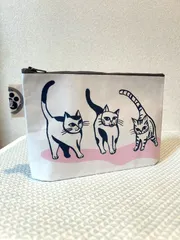 紙袋を使ったポーチ WSおさらい 先週、アップサイクルのWSでポーチ作りを習いました^_^今日は、作り方を思い出しながら、家にあったネコちゃん🐈の紙袋を使ってポーチを作りました。↑可愛いすぎて捨てられないし使えなかった紙袋🛍️↑ファスナーのサイズとネコの位置が良い具合におさまりました!後ろ姿も可愛い💕
