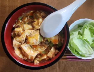 麻婆豆腐丼 今夜は麻婆豆腐✨我が家はいつも丼にします😊もちろん‼️ソースはレトルトです😆