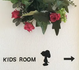 ルームプレートを切り絵で ■作品内容切り絵とフェイクグリーンで飾りました■こだわりポイントフェイクグリーンは個別に売っているものをリースにして、切り絵で文字を作り壁に貼りました。子供達は特別感があって喜んでくれました。